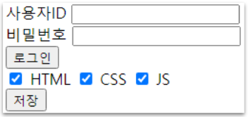 <body> <label for="userId">사용자ID</label> <input type="text" name="" id="userId" value="" class="form-input" /> <br /> <label for="userPass">비밀번호</label> <input type="text" name="" id="userPass" value="" /> <br /> <button onclick="login();">로그인</button> <br /> <input type="checkbox" name="chk_pl" id="chk_html" value="HTML" /> <label for="chk_html">HTML</label> <input type="checkbox" name="chk_pl" id="chk_css" value="CSS" /> <label for="chk_css">CSS</label> <input type="checkbox" name="chk_pl" id="chk_js" value="JS" /> <label for="chk_js">JS</label> <br /> <button onclick="doSave2();">저장</button> <script> // element의 id를 이용하는 방법(HTML요소를 발견하면 자바스크립트 객체로 반환, 발견하지 못하면 null 반환) console.log(document.getElementById("userId")); console.log(document.querySelector("#userPass")); // element의 태그명을 이용하는 방법(배열로 리턴) let labelElements = document.getElementsByTagName("label"); console.log(labelElements); console.log(document.querySelectorAll("label")); // element의 클래스명을 이용하는 방법 console.log(document.getElementsByClassName("form-input")); console.log(document.querySelectorAll(".form-input")); // element의 속성 중 name을 이용하는 방법 console.log(document.getElementsByName("chk-pl")); function login() { let userIdElement = document.getElementById("userId"); let userId = userIdElement.value; console.log(userIdElement); console.log(userId); } </script> </body><body> <label for="userId">사용자ID</label> <input type="text" name="" id="userId" value="" class="form-input" /> <br /> <label for="userPass">비밀번호</label> <input type="text" name="" id="userPass" value="" /> <br /> <button onclick="login();">로그인</button> <br /> <input type="checkbox" name="chk_pl" id="chk_html" value="HTML" /> <label for="chk_html">HTML</label> <input type="checkbox" name="chk_pl" id="chk_css" value="CSS" /> <label for="chk_css">CSS</label> <input type="checkbox" name="chk_pl" id="chk_js" value="JS" /> <label for="chk_js">JS</label> <br /> <button onclick="doSave();">저장</button> <script> // [그림 1]과 같이 체크박스를 체크할 경우 function doSave() { let chks = document.getElementsByName("chk_pl"); let checkValue = []; for (const chk of chks) { if (chk.checked) { checkValue.push(chk.value); } } console.log(checkValue); } // ----- 출력 결과 ----- // ['HTML', 'CSS', 'JS'] // --------------------- // CSS 선택자를 이용하면 더욱 간결한 코드를 짤 수 있다. function doSave2() { let checkedEles = document.querySelectorAll("[name=chk_pl]:checked"); console.log(checkedEles); // 이 다음은 for문 사용해 배열에 담으면 된다. 코드가 훨씬 간결해졌다. } </script> </body>