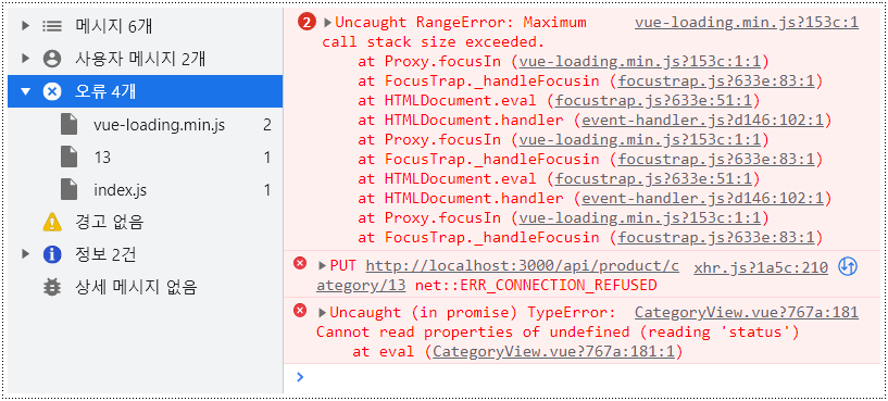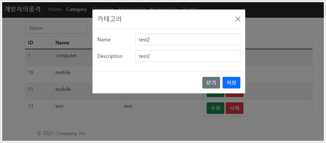 [그림 1]과 같이 카테고리 데이터를 수정(put)하는 기능을 적용하고 테스트하였는데 문제가 생겼다.