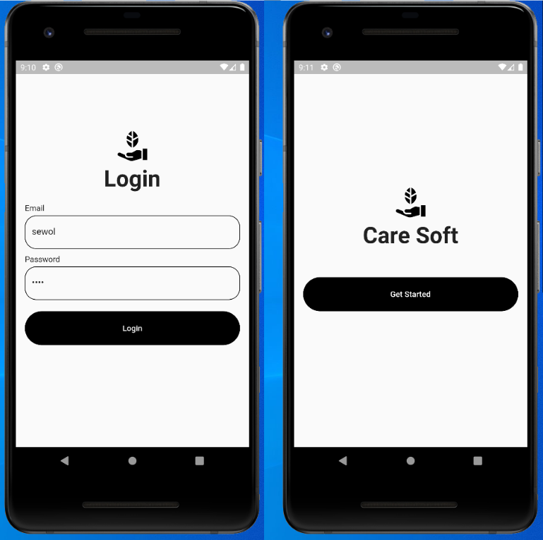 [그림 3] 완성된 로그인 앱(왼쪽 LoginPage, 오른쪽 HomePage)